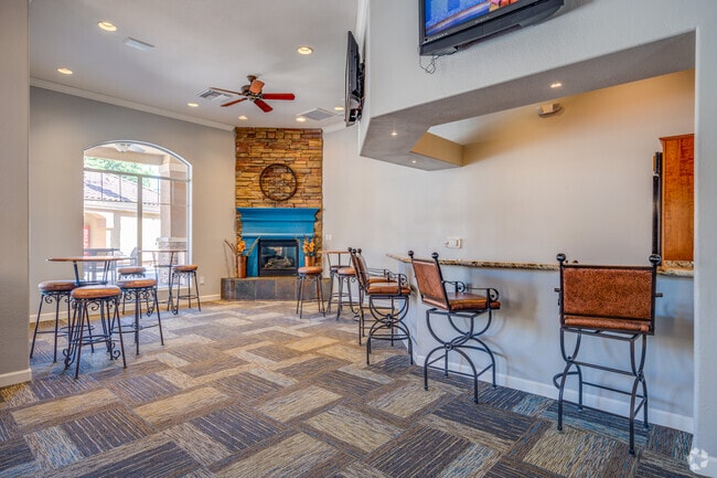 Clubhouse with fireplace and bar