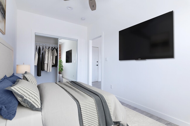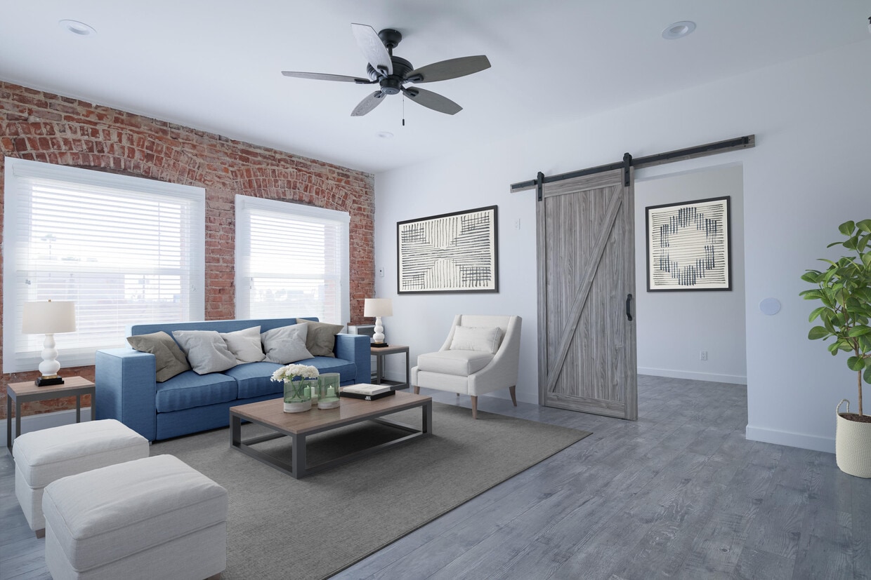 Spanish Style: Charming, exposed brick apartments with spacious floor plans, extensive closet space, stainless steel appliances, and hardwood flooring.