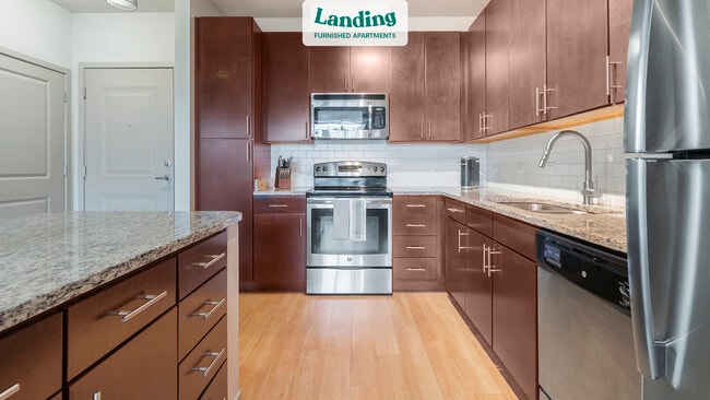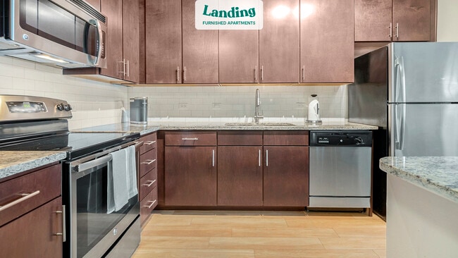 Every apartment is outfitted with all the modern essentials including: custom-designed furnishings, a fully-equipped kitchen with deluxe stainless steel appliances, a gourmet coffee maker, premium linens, Smart TVs, and incredibly fast, reliable internet for working from home. When you live with Landing, you'll enjoy a hassle-free experience with the added benefit of 24/7 access to our dedicated member experience team.