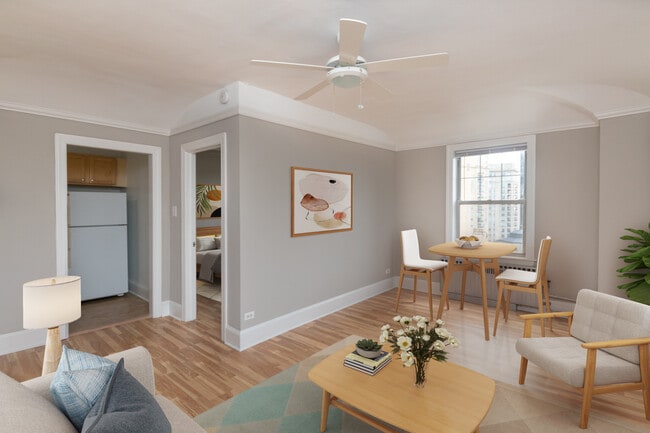 Unlock the combination for an exceptional urban lifestyle. Yours begins on a beautiful tree-lined street, within one of these side-by-side sister buildings, in the heart of Lincoln Park. Rumored to have been frequented by Al Capone during his infamous escapades, and then, serving as a (believe it or not) nuclear fallout shelter, today it's an amazing place to come home to. Spy the gorgeously restored lobby with original 1920's detailing, then segue to the modern living spaces; new rehabs (including a penthouse) with maple hardwood floors, all-new kitchens and bathrooms, spacious walk-in closets and air conditioning. Among other complimentary perks are amenities such as internet & DirecTV Choice Package Programming, heat, natural gas and water. At the end of the day, this place is a keeper. Speaking of, check out the sundeck, a nice place to unwind after a day in the park. B good to yourself...