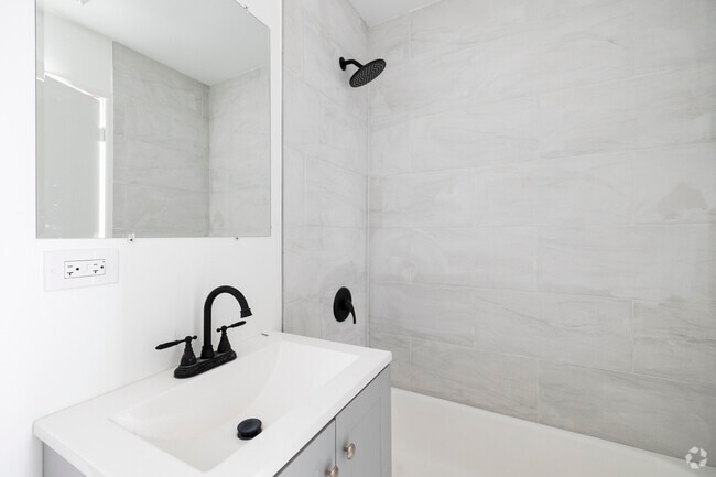Luxurious bathrooms with new tilework, rainfall showers, and chic vanities