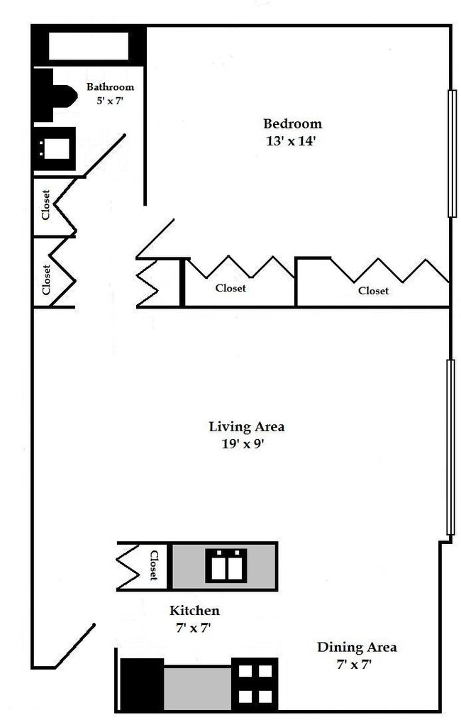 - Floor to ceiling closets
