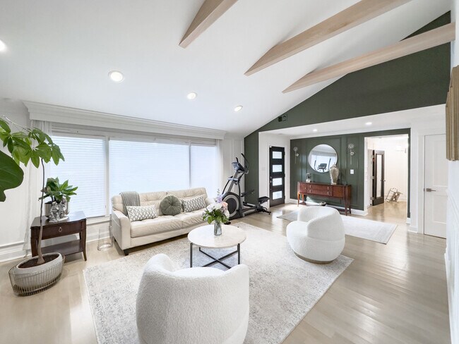 Stunning fully furnished four bedroom,two bathroom ranch style single family home with full finished basement in quiet Lincolnwood neighborhood features central air,hardwood floors,custom lighting throughout,amazing island kitchen with quartz countertops,top of the line appliances,open floor plan,huge living/dining rooms,gas fireplace,spacious bedrooms,ample closet/storage space,luxurious spa like bathrooms,full finished basement,in unit laundry,2 car garage and beautiful outdoor space with lovely garden and 3 fire pits. Also available for shorter term lease.