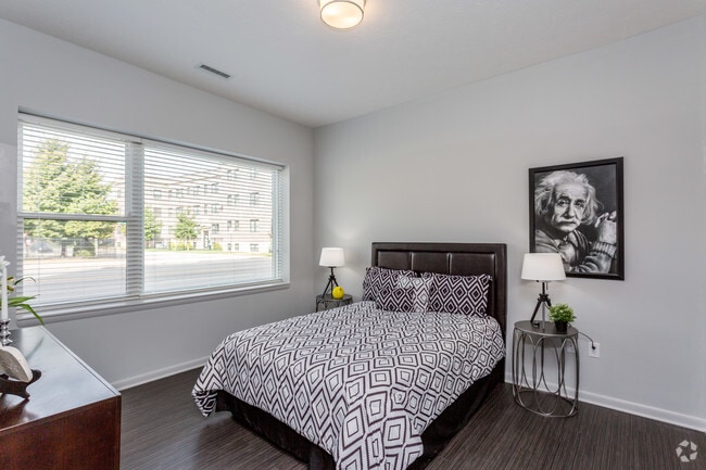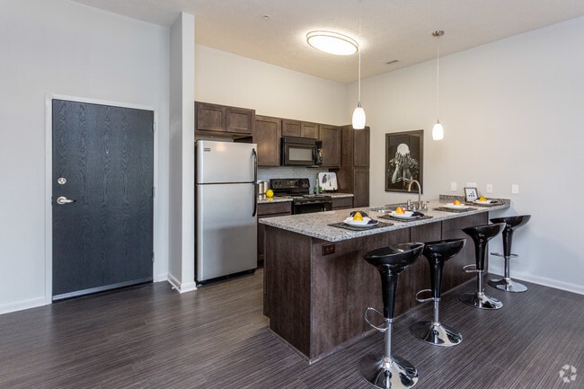 2131 North offers luxury one and two bedroom apartments for rent in the historic Herron-Morton neighborhood. Enjoy the benefits of a residential neighborhood and the proximity to downtown Indy. Our one and two bedroom apartment homes feature 9 & 10 foot ceilings, interior entries, granite counters, modern black wood-like flooring, washer & dryer in unit, over-sized floor plans, and a balcony or patio in every unit. Residents enjoy reserved parking, controlled access entry, a resident-only fitness center, interior bike storage room, and additional storage rooms available.