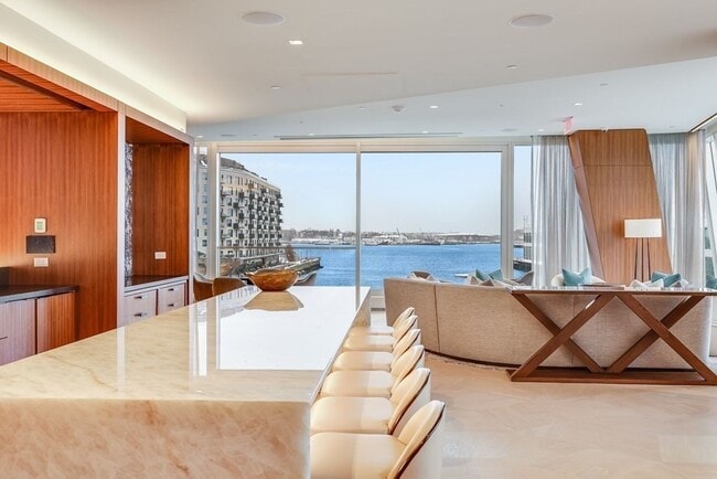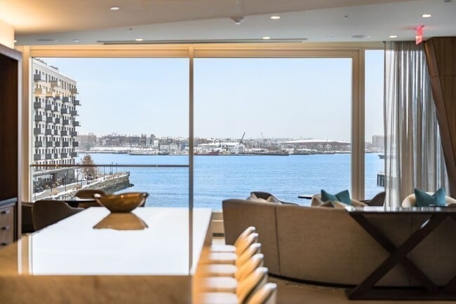 Wake up to sail boats drifting by! Be the first to live in this stunning harbor facing home. One of 114 stunning Residences spanning 22 floors directly on the water in Boston's Seaport District with breathtaking views. Managed and staffed by the famous 5-star St. Regis Hotel Group. Wolf/Sub-Zero appliances and custom hardware, wide plank oak HW floors, marble countertops, custom Italian flat panel cabinetry and HEATED master bath floors. Residents enjoy an entire 12,000 SQFT floor of amenities including: an infinity edge resort indoor/outdoor pool and terrace with a nano folding door to a harbor view patio, sauna, jacuzzi, steam room, spa, library, conference center, fitness center, sports simulator, residential lounge/bar, private wine vaults and 2 resident hotel guest suites. Valet, doorman, butler, 24/7 concierge, and even in-room dining provided by SAVR Restaurant.