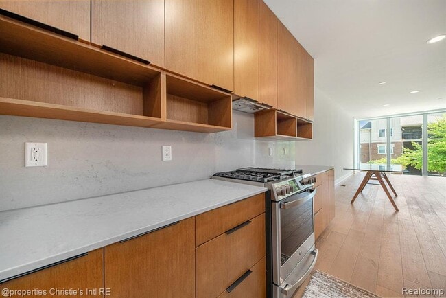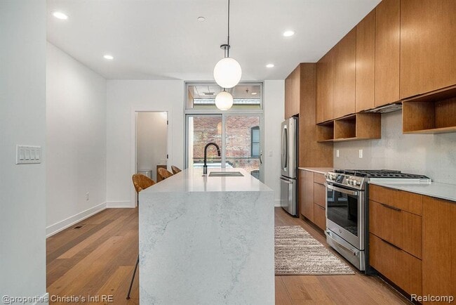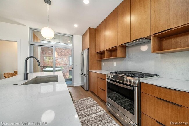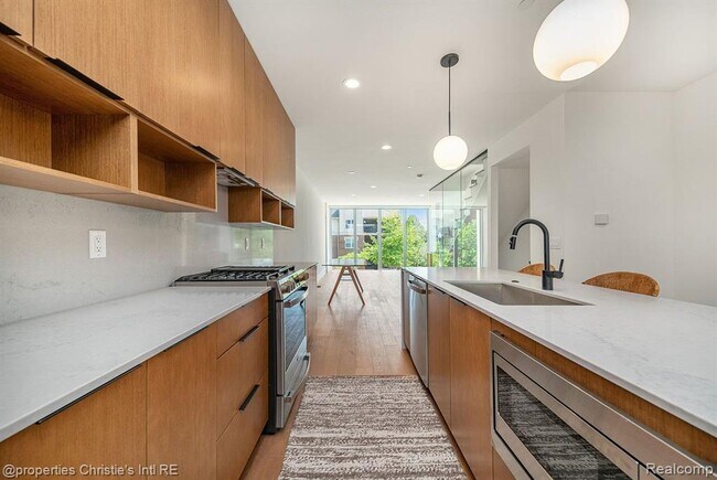 Rare opportunity to move into this luxury 4-story City Modern condo! Landlord will consider a 6 month lease for a premium. Many outdoor areas: front porch, 2nd floor balcony & 2 rooftop spaces with great views of the city! This 2 bedroom, 2 and 1 half bath Smarthome includes an attached 2 car garage! The light & airy design features floor to ceiling windows, hardwood floors, custom lighting & closets and touches of brushed gold & matte black throughout! The entry-level mud room has brick detail and step up to the open concept Dining, Great Room & Kitchen w/ a stunning glass wall feature over the staircase. The kitchen boasts stainless appliances, waterfall quartz island and countertops. The 3rd floor has a primary ensuite w/ 2 walk-in closets, triple vanity bathroom, guest bathroom and bedroom w/custom built-ins, laundry area and linen closet. The 4th floor holds a bonus entertaining space w/ wet bar & 2 outdoor decks! Located in Brush Park between Downtown & Midtown offers many conveniences out your front door!