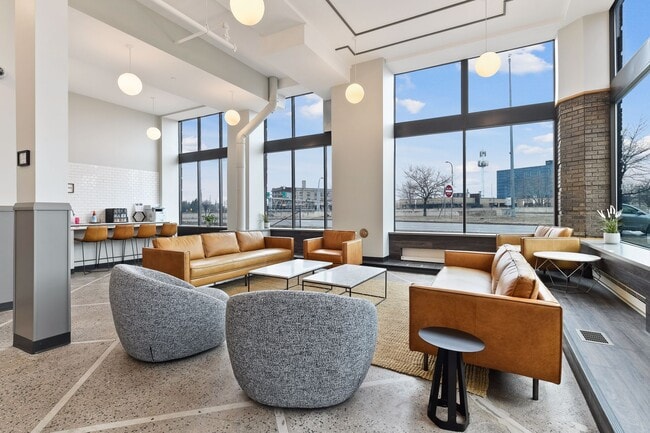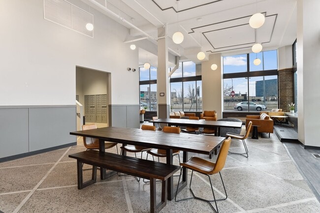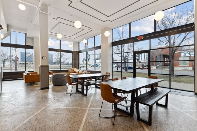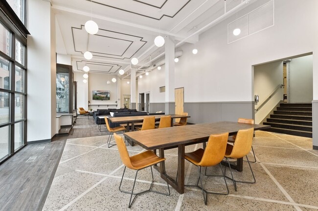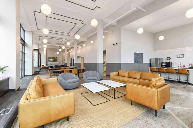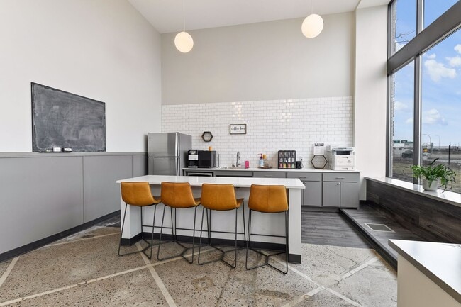 Outside your apartment take advantage of the Alden's newly renovated 24-hour amenity spaces including a fitness suite, co-working and lounge spaces, coffee bar, and kitchenette!