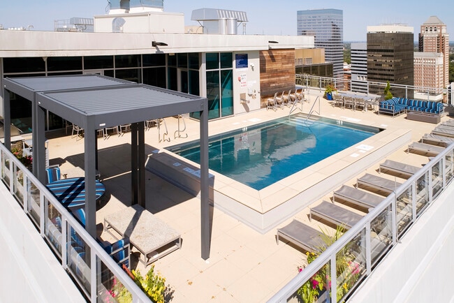 Rooftop resort-inspired swimming pool