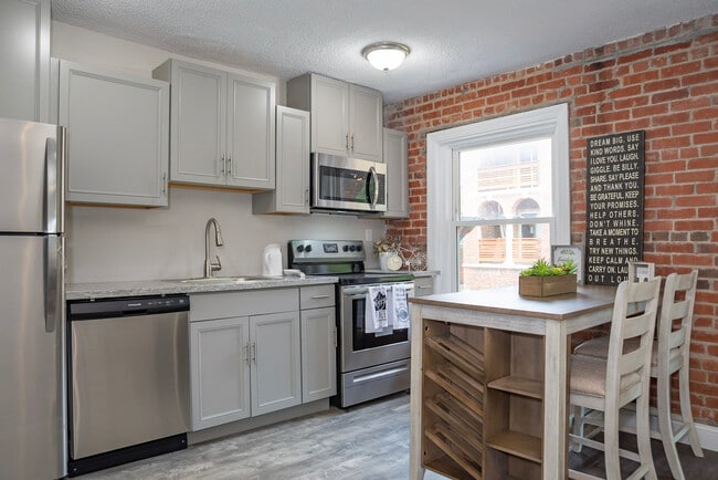 Each apartment is a large one bedroom unit with either a large picture window or terraced balcony overlooking the courtyard. All units have exposed brick detail, new stainless steel appliances, modern fixtures, and smart technology.