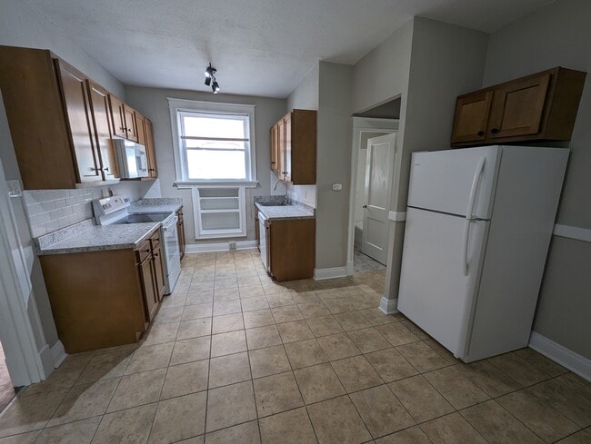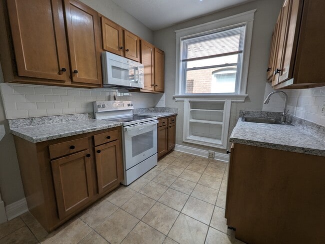 Come check out this awesome 2 bedroom apartment today! There is hardwood flooring in the living room and both bedrooms. Tile floors for the kitchen and bathroom. This apartment has 1 large bedroom right up front, with some large windows to get some fresh air. There is a great sized living room with storage in abundance. Enjoy a pretty kitchen with all updated appliances and wood cabinetry. The bathroom has also been updated with a shower/tub combo. The second bedroom is located in the back of the apartment with a door to a great covered deck.