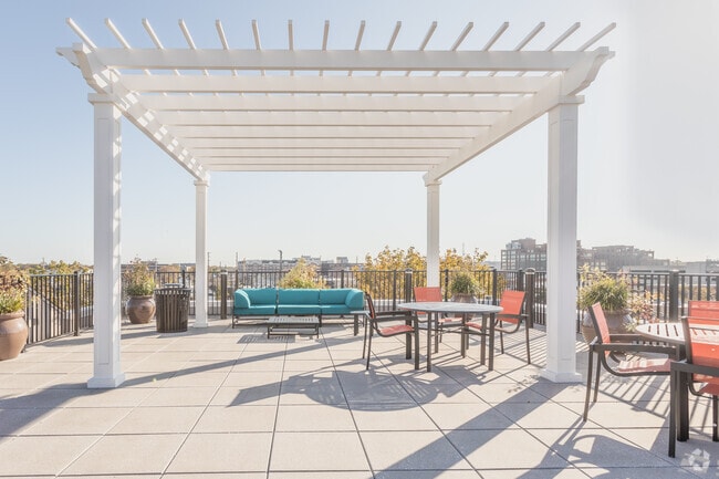 Inside, features like Quartz countertops, chef-inspired islands*, Energy Star appliances, and tiled kitchen backsplashes make cooking a first-class experience, while comforts like walk-in closets*, framed, backlit vanity mirrors and nine-foot ceilings are designed to dazzle. LEED Gold Certification ensures a thoughtful eco-conscious design across both buildings. And if that’s not enough, the 4th floor allows discerning residents to elevate their experiences even further with an array of enhancements that include under cabinet lighting, upgraded kitchen appliances and a gas fireplace.