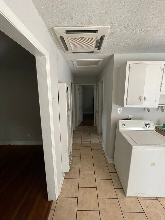 Nice 2 bedroom, 1 bath apartment in great location. Quiet neighbors! Stove Refrigerator, Refrigerator! Fresh paint! Ceiling Fans! Hardwood Floors! Washer & Dryer Hook-ups! Private parking lot behind units! New Central Heat & AC