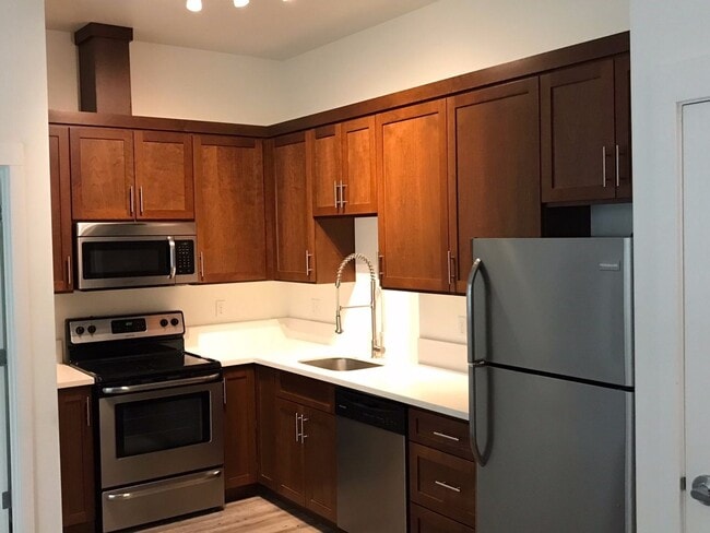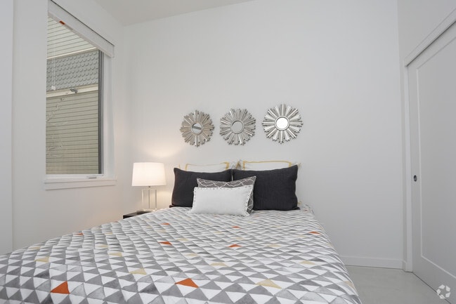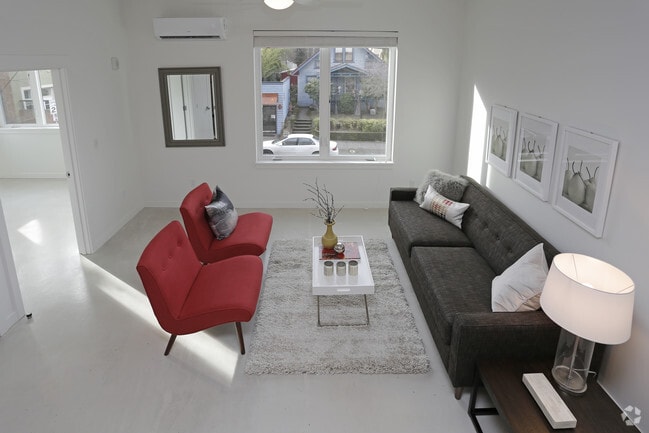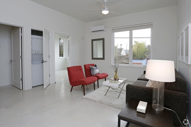 Perched in a prime location on N Mississippi Avenue, The Roux boasts sophisticated living spaces, understated designer finishes, and unparalleled access to one of the most interesting neighborhoods in Portland. Each bright apartment showcases the contemporary condo-grade finishes that make this property stand out from the rest: luxe polished concrete floors, soaring 11' ceilings, oversized entry doors and stunning views of the Cascade mountains. Kitchens have solid surface quartz countertops, upgraded designer cabinetry, stainless steel appliances including dishwashers and built-in microwaves, and undermount stainless steel sinks. All units include washers & dryers as well as individually-controlled air-conditioning and heating units. Plentiful bike storage as well as additional storage space is available onsite.