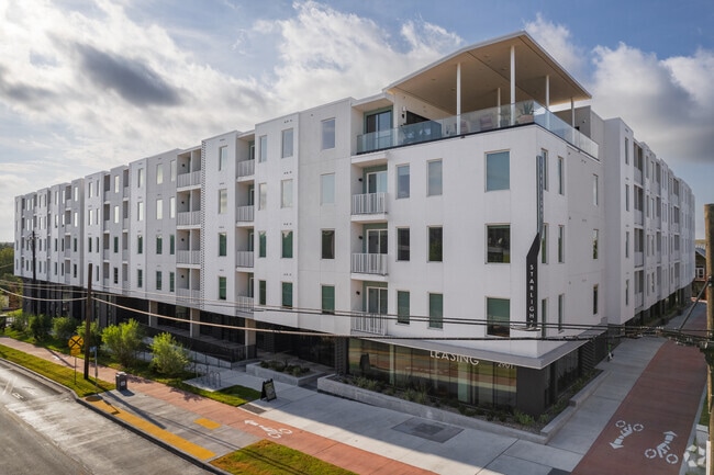 You'll find impressive amenities and lavish finish outs in your new apartment home at Starlight in East Austin. Choose from over 30 different floorplan layouts ranging from studios, one bedrooms, and two bedrooms with top tier finish outs. The beautiful pool courtyard features full size cabanas and a heated spa with lavish landscaping. Starlight also features a large Wellness Center, rooftop lounge, clubhouse, and parking garage.