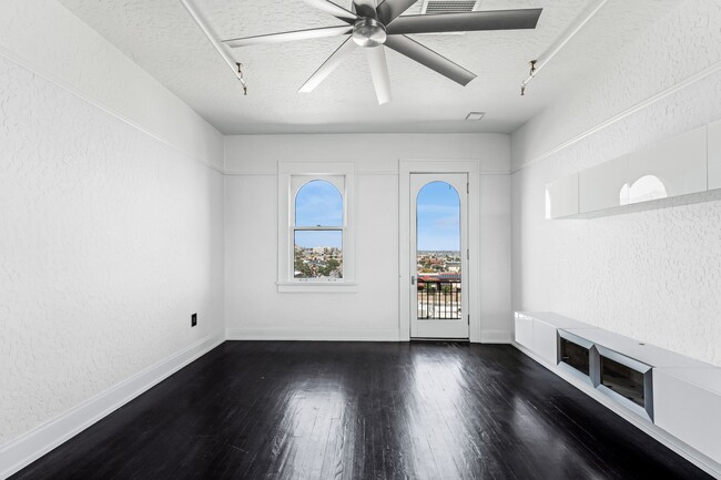 Fully renovated balcony apartments in a historic building, steps away from downtown El Paso. Refrigerated air, custom cabinets, quartz countertops, stainless steel appliances, original hardwood floors. Please contact us for additional details.