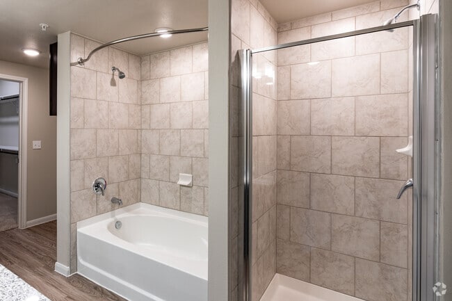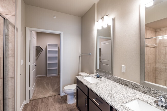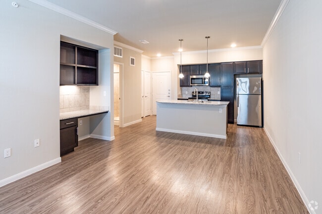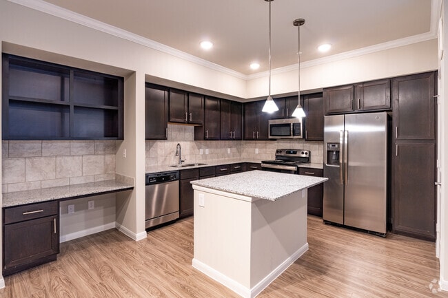 Our interior amenities include, granite countertops, grey toned faux wood vinyl flooring, Island in the kitchen and stainless steel appliances. Take advantage of the built in desk, washer and dryer in each apartment home, and trash chutes on top floors.