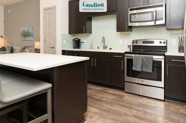 Every apartment is outfitted with all the modern essentials including: custom-designed furnishings, a fully-equipped kitchen with deluxe stainless steel appliances, a gourmet coffee maker, premium linens, Smart TVs, and incredibly fast, reliable internet for working from home. When you live with Landing, you'll enjoy a hassle-free experience with the added benefit of 24/7 access to our dedicated member experience team.