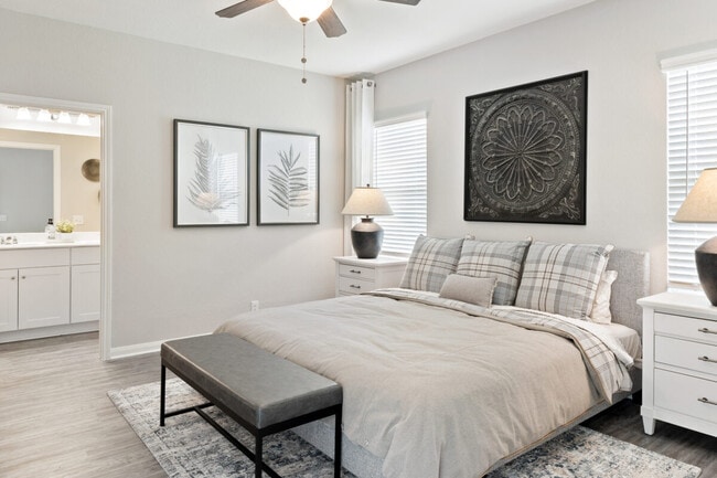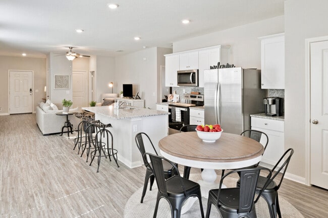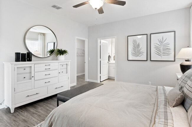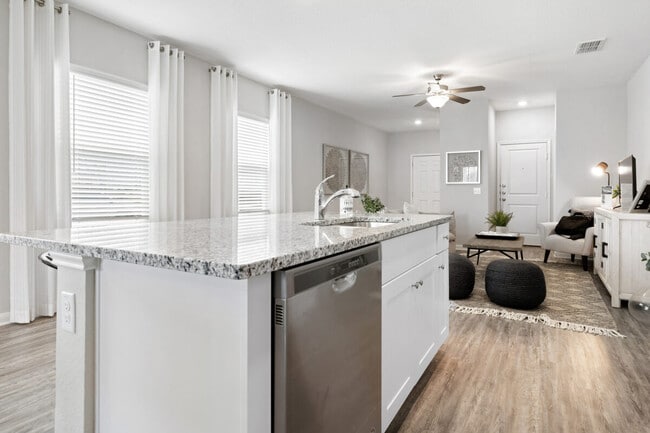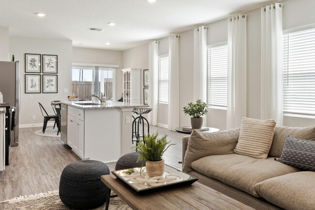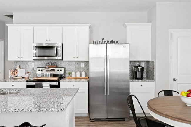The community features seven floor plans with three- and four bedrooms, all artfully designed for your busy lifestyle. Every home includes a gourmet kitchen with granite countertops and stainless steel appliances, primary bath dual sink vanities, programmable thermostats, and a fully fenced backyard.